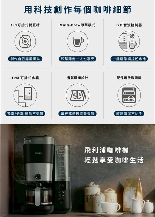 『飛利浦』1+1全自動雙研磨美式咖啡機—4/24~6/30
