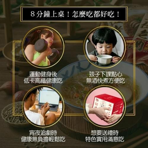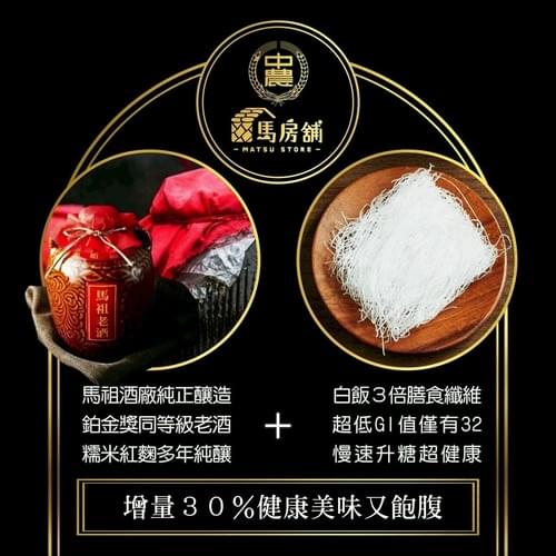 高纖、低卡、低GI的健康美食,傳承75年製粉技術與馬祖老酒碰撞出8分鐘上桌的全新經典美味,馬祖酒廠純正釀造、鉑金獎同等級老酒、糯米紅麴多年純釀、白飯3倍膳食纖維、超低G1值僅有32、慢速升糖超健康、增量30%健康美味又飽腹。