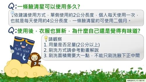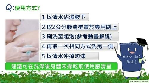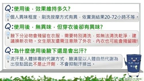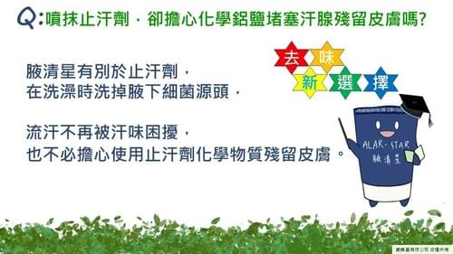 📌 腋清星是由台灣品牌「愛樂星」研發的專利配方,不含鋁鹽、不含香精、不含酒精,洗去異味、不留殘留!
