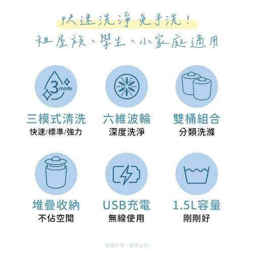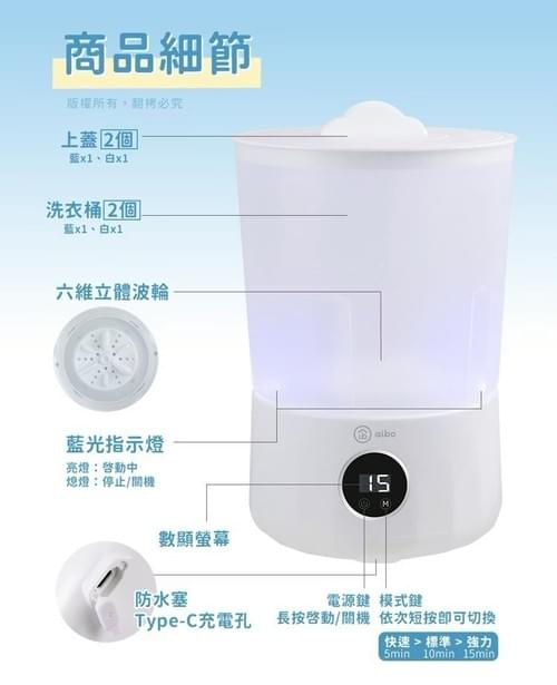 『aibo 』洗淨三模式 1.5L雙桶 無線洗衣機(USB充電)