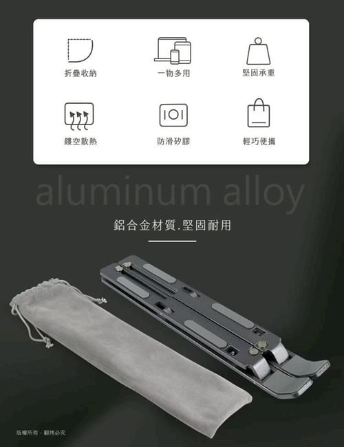 『aibo』折疊可攜式 6檔高度 鋁合金筆電支架(附收納袋)—1/12~2/2