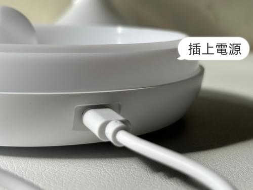 3.請將電源線Type-C端連接至主機後方插孔,再將電源線USB端接上電源。建議電源不可低於5V/2A,以免電壓不足影響出霧效果