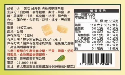 『CHILL愛吃』清新潤喉蜂梨糖—3/9~3/26